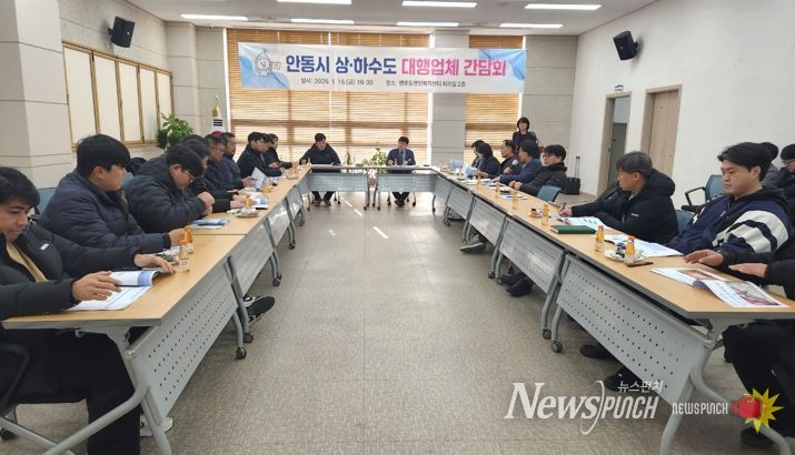 뉴스펀치 박세훈 기자 | 안동시는 1월 16일 명륜동행정복지센터 2층 회의실에서 상․하수도 대행업체 10개 사 대표와 시청 직원 등 30여 명이 참석한 가운데, 대행사업 품질 향상 및 상호 협력 강화를 위한 ‘상하수도 대행업체 간담회’를 개최했다.