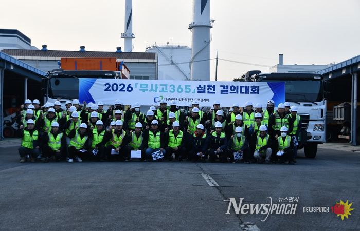 뉴스펀치 조평훈 기자 | 대구공공시설관리공단은 1월 15일, 병오년 새해를 맞아 도로관리처 재난상황실에서 ‘2026년 무사고 365 실천 결의대회’를 개최했다.