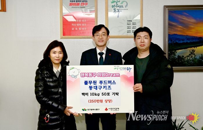 뉴스펀치 조평훈 기자 | 풀무원푸드머스 동대구키즈는 지난 15일, 동구청을 방문해 관내 지역아동센터를 위해 10kg 백미 50포를 기탁했다.