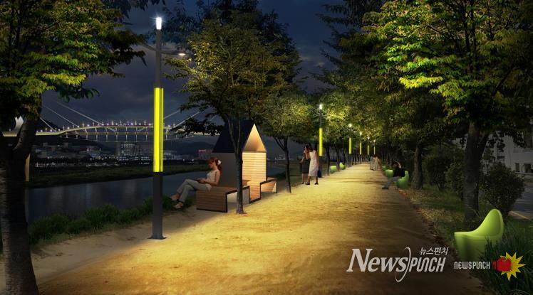 또 영대교에서부터 쌍벽루국민체육센터까지 둑마루길 800m구간에는 LED열주등 34개 경관조명 개선을 통해 기존산책로가 감성공간으로 탈바꿈하게 된다.