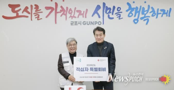 뉴스펀치 박상훈 기자 | 군포시는 16일 2026년도 적십자 특별회비 100만원을 대한적십자사 경기도지사에 전달하며 새해 따뜻한 나눔의 시작을 알렸다.