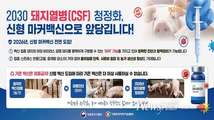 이번 백신 전환은 2030년 돼지열병 청정국 지위 확보를 목표로 한 국가 중장기 방역정책의 핵심 조치로, 야외바이러스 감염축과 백신 접종축을 구분할 수 있는 마커백신 도입을 통해 질병 발생 여부를 과학적으로 판별하고, 발생 시 신속한 대응이 가능하게 하기 위한 것이다.