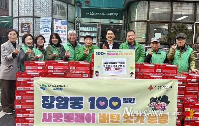 뉴스펀치 박상훈 기자 | 의정부시 장암동주민센터는 1월 15일 장암동 새마을지도자협의회·새마을부녀회가 겨울철 어려운 이웃들을 위해 라면 100상자를 전달하며 ‘100일간 사랑릴레이 배턴 잇기’에 동참했다고 밝혔다.