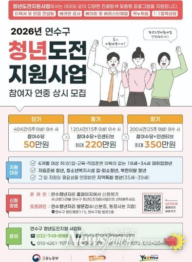 뉴스펀치 정홍균 기자 | 연수구는 청년들의 경제 활동과 노동시장 진입을 돕기 위해 ‘2026년 청년도전지원사업’ 참여자를 모집한다.