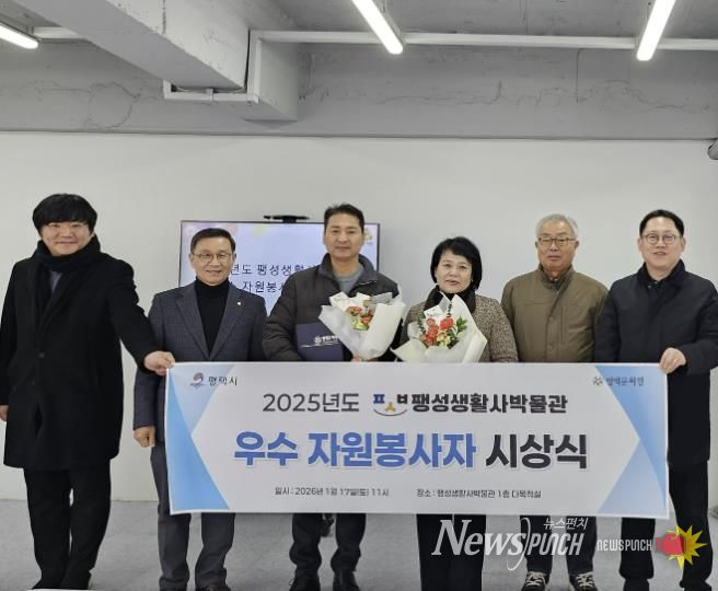 뉴스펀치 박상훈 기자 | 팽성생활사박물관은 2026년 1월 17일 팽성생활사박물관 1층 다목적실에서 ‘2025 팽성생활사박물관 우수 자원봉사자 시상식’을 열고, 한 해 동안 헌신적인 봉사활동을 펼친 자원봉사자들에게 표창장과 감사 선물을 전달했다.