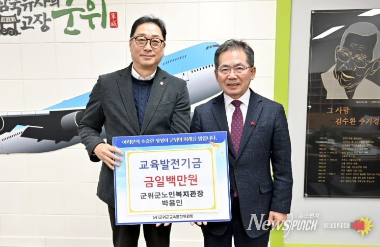 뉴스펀치 박세훈 기자 | 지난 15일 군위군노인복지관 박용민 관장과 군위군 궁도스포츠클럽 회원일동은 군위군청을 방문하여 지역의 교육 발전과 인재양성을 위해 써달라며 교육발전기금 200만원을 기탁했다.