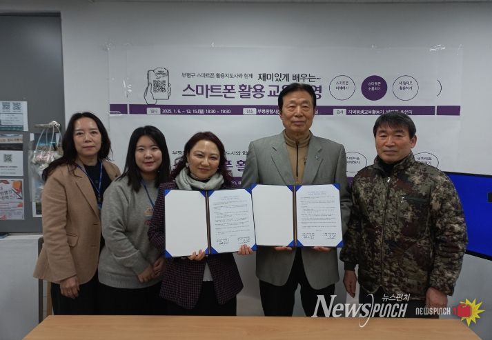 뉴스펀치 정홍균 기자 | 부평구 산곡노인문화센터는 지난 16일 부평종합시장 고객지원센터에서 부평종합시장상인회와 ‘1:1 맞춤형 온라인 길라잡이’ 사업추진을 위한 업무협약식을 체결했다.