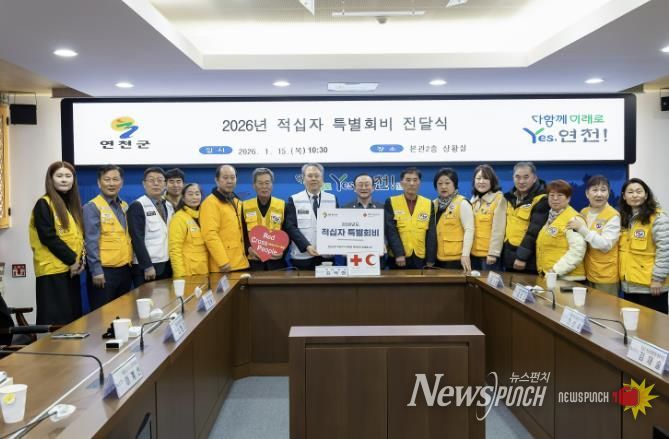뉴스펀치 박상훈 기자 | 연천군은 지난 15일 군청 상황실에서 연천군수, 대한적십자사 경기도지사 우광호 사무처장, 연천군협의회 금가현 회장 및 회원 등이 참석한 가운데 2026년 적십자 특별회비 전달식을 개최했다.