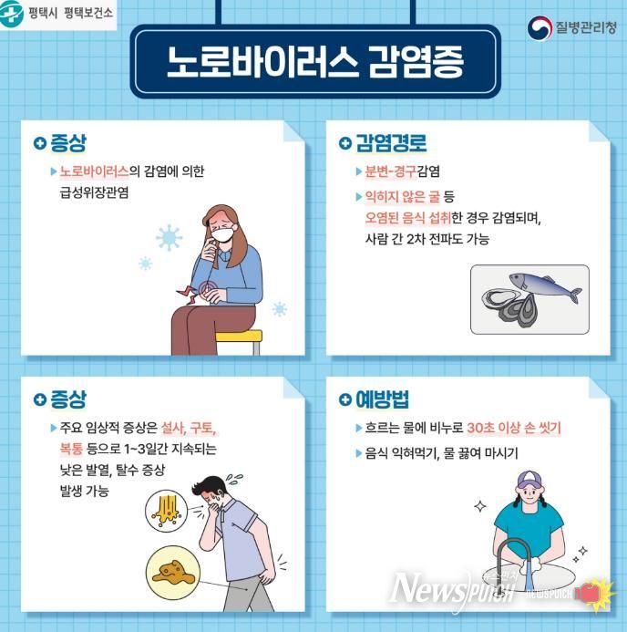 뉴스펀치 박상훈 기자 | 평택시는 최근 영유아를 중심으로 노로바이러스 감염증 환자 발생이 증가함에 따라, 영유아 이용 시설(어린이집, 유치원, 키즈카페 등)을 대상으로 개인위생 관리 강화와 예방수칙 준수를 당부했다.
