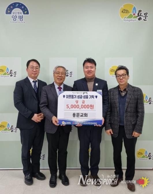 뉴스펀치 박상훈 기자 | 양평군 용문면은 지난 16일 용문교회가 관내 어려운 이웃을 돕기 위해 이웃돕기 성금 500만 원을 기탁했다고 밝혔다.