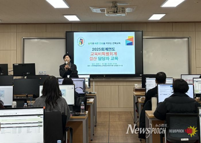 뉴스펀치 최영남 기자 | 전북특별자치도교육청은 19일 전북교육청교육연수원에서 본청과 직속기관, 교육지원청 소속 결산업무 담당자 60여 명을 대상으로 2025회계연도 결산업무 연수를 실시했다.