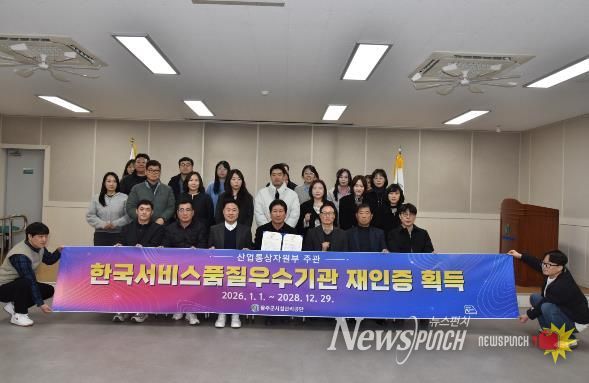 뉴스펀치 김윤걸 기자 | 주군시설관리공단은 산업통상자원부가 주관하는 한국서비스품질우수기관 인증 평가에서 서비스품질 우수기관으로 선정돼 재인증을 획득했다.