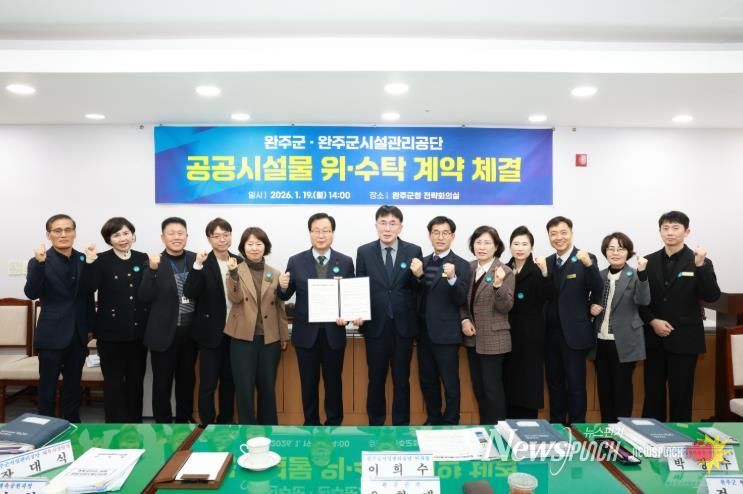 19일 양 기관은 완주군청 전략회의실에서 ▲완주군 청소년수련관 수영장 ▲완주군 국민체육센터 ▲완주군 이서문화체육센터 ▲완주군 근로자종합복지관 수영장 등 4개 공공시설의 운영·관리를 위한 위·수탁 계약을 체결했다.
