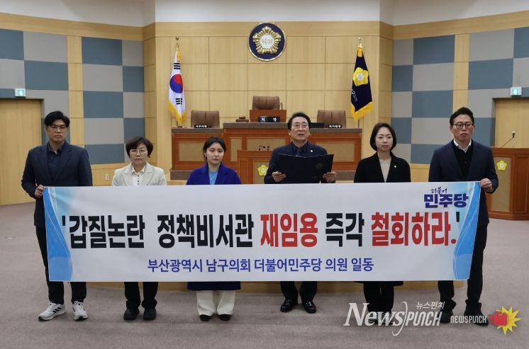 뉴스펀치 김윤걸 기자 | 부산 2026년 1월 19일 남구의회 더불어민주당 의원 6인은 현재 남구청장과 남구청공무원노동조합의 갈등국면에 대한 성명서를 발표했다.