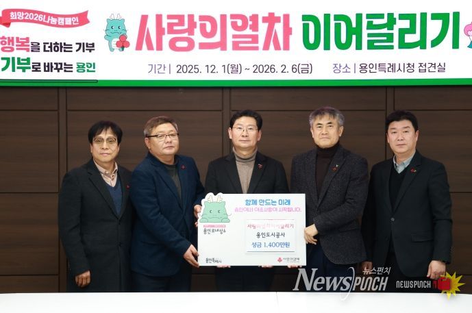 뉴스펀치 박상훈 기자 | 용인도시공사는 19일 ‘노사합동 사랑의열차 이어달리기’ 성금 1,400만원을 용인특례시에 기탁했다.