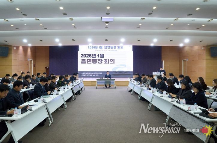뉴스펀치 이현승 기자 | 천안시는 19일 시청 대회의실에서 31개 읍면동장이 참석한 가운데 ‘병오년 첫 읍면동장 회의’를 열고 시정 현안을 점검했다.