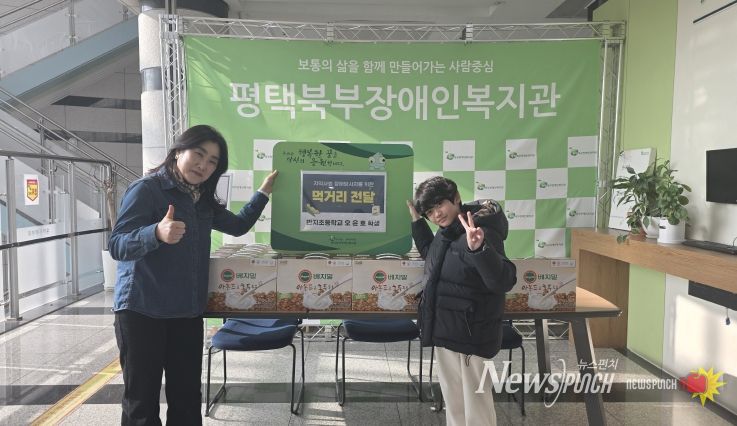 뉴스펀치 박상훈 기자 | 평택북부장애인복지관은 1월 16일 14시, 이충동 반지초등학교 오윤호 학생으로부터 먹거리(두유 20박스)를 후원받았다.