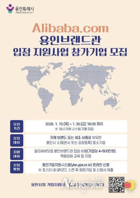 뉴스펀치 박상훈 기자 | 용인특례시는 오는 1월 30일까지 B2B(기업 간 거래) 플랫폼 알리바바닷컴 내 ‘용인브랜드관’(YoGo) 입점 참가기업을 모집한다고 20일 밝혔다.