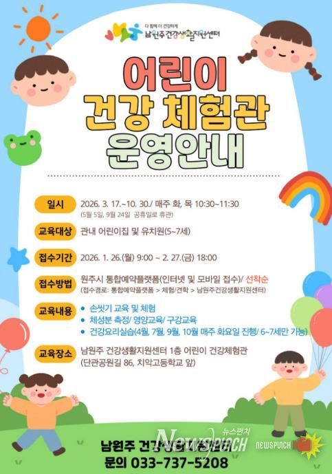 뉴스펀치 조평훈 기자 | 남원주건강생활지원센터는 손 씻기, 영양 등을 주제로 미취학 아동들에게 건강 교육을 제공하는 ‘어린이 건강체험관’을 운영하고 있다.