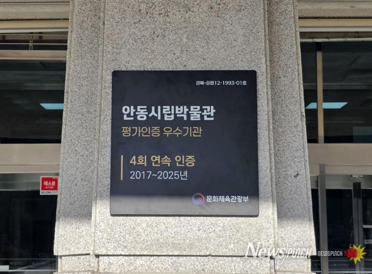 뉴스펀치 박세훈 기자 | 안동시는 안동시립박물관이 문화체육관광부에서 실시한 ‘2025년 공립박물관 평가인증제’에서 4회 연속 평가인증 우수기관으로 선정되는 쾌거를 거뒀다고 1월 20일 밝혔다.