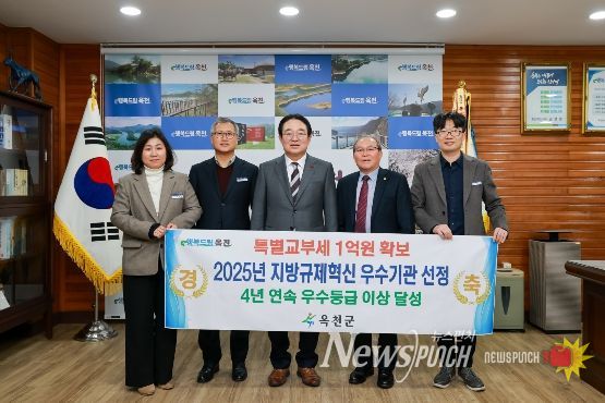 뉴스펀치 이현승 기자 | 옥천군은 행정안전부가 주관하는‘2025년 지방규제혁신 추진성과 평가’에서 4년 연속 우수기관으로 선정돼 특별교부세 1억 원을 확보하는 성과를 거두었다고 밝혔다.