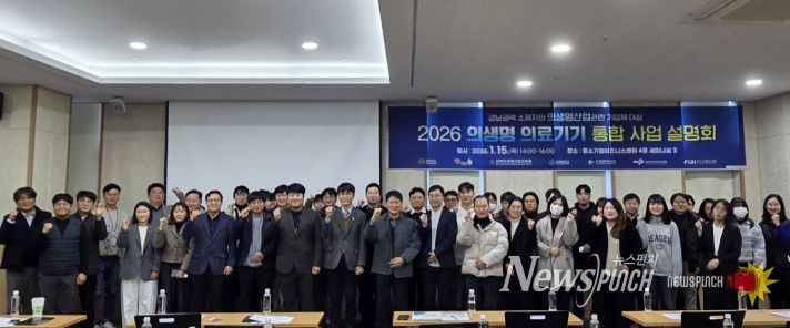 뉴스펀치 박세훈 기자 | 김해의생명·산업진흥원은 지난 15일, 김해중소기업비즈니스센터에서 지역 내 의료기기·헬스케어 기업의 성장을 돕기 위한 '2026년 의생명·의료기기 통합 사업설명회'가 성황리에 마무리됐다고 밝혔다.