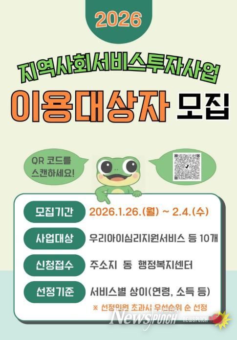 뉴스펀치 박상훈 기자 | 수원특례시는 1월 26일부터 2월 4일까지 ‘2026년 지역사회 서비스 투자사업’ 이용자를 모집한다.