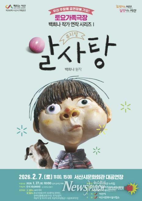 뉴스펀치 이현승 기자 | 충남 서산시는 오는 2월 7일 오전 11시와 오후 3시 문화회관 대공연장에서 가족뮤지컬 ‘알사탕’을 개최한다고 밝혔다.
