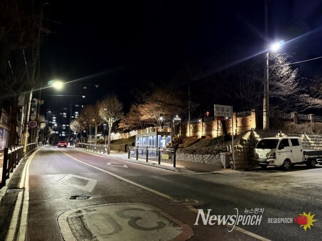 뉴스펀치 이현승 기자 | 예산군 예산읍 주교리 예산여자고등학교 주변 일대가 낮과 밤 모두 눈에 띄게 변화했다.