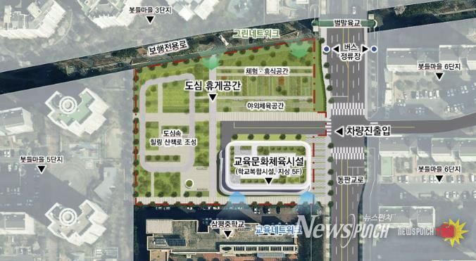 수립된 기본 구상안에는 연면적 약 15,000㎡ 규모의 교육·문화·체육시설을 중심으로 도서관, 수영장, 문화센터, 주차장을 조성하고, 편익시설과 산책로가 어우러진 도심 휴게공간을 함께 마련하는 내용이 담겼다.