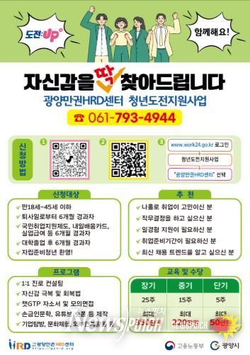 광양시 관계자는 “이번 청년도전지원사업이 취업 시장에서 멀어졌던 청년들에게 다시 한번 도전할 수 있는 계기가 되길 바란다”며 “프로그램 이수 후에도 국민취업지원제도, 일경험 사업 등 다양한 지원사업과 연계해 청년들이 안정적으로 취업에 성공할 수 있도록 적극 지원하겠다”고 밝혔다.
