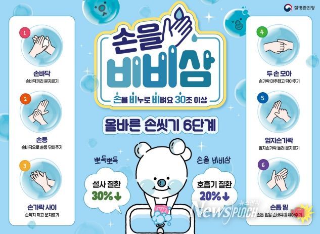 올바른 손 씻기는 감염병 예방을 위한 가장 쉽고 효과적인 방법으로, 흐르는 물에 비누로 30초 이상 손을 씻으면 최근 유행 중인 인플루엔자와 노로바이러스 등 장관감염증과 호흡기 감염병 예방에 큰 효과가 있다.