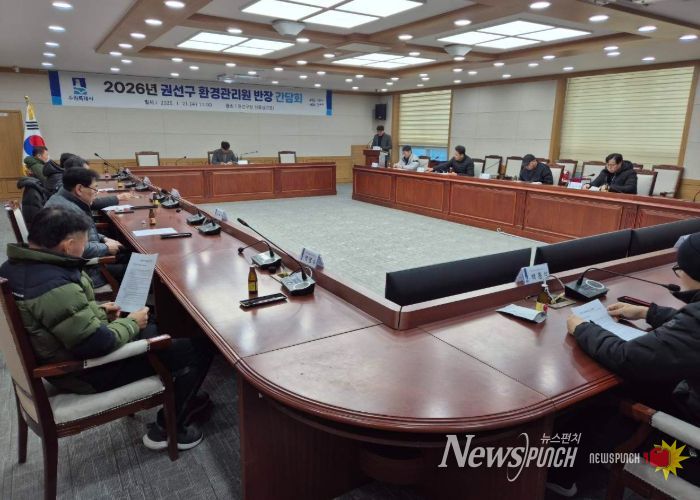 뉴스펀치 박상훈 기자 | 권선구 환경위생과는 최일선에서 일하는 환경관리원들을 격려하고 애로사항을 청취하고자 ‘환경관리원 간담회’를 2026년 1월 21일 오전 11시에 개최했다.
