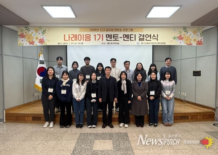 뉴스펀치 박상훈 기자 | 동두천양주교육지원청은 신규공무원의 조기 공직 적응을 지원하기 위해 1월 21일, 동두천양주교육지원청에서 ‘나래이음 1기 결연식’을 개최한다. ‘나래이음’은 동두천양주 신규공무원 대상 교육프로그램 중 멘토링 프로그램의 명칭으로, 연간 멘토링을 통해 직무 역량과 정서적 안정을 함께 지원하고 선후배 간 소통과 공감을 기반으로 한 조직문화 조성을 목적으로 운영된다.