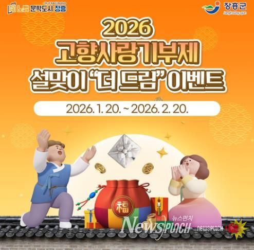뉴스펀치 김용희 기자 | 장흥군은 설 명절을 앞두고 고향사랑기부제 활성화를 위해 1월 20일부터 2월 20일까지 ‘2026 설맞이 고향사랑기부제 더 드림 이벤트’를 진행한다.