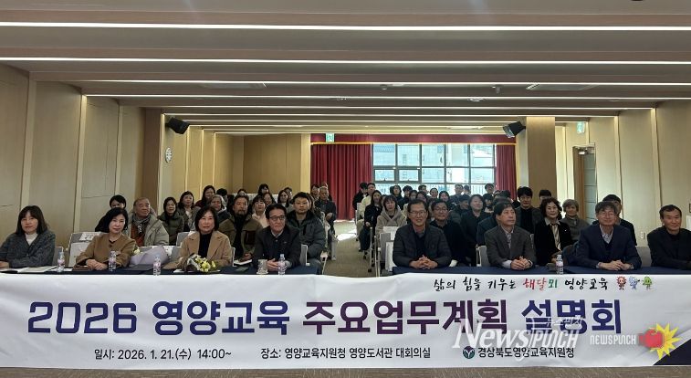 뉴스펀치 박세훈 기자 | 경상북도영양교육지원청은 2026년 1월 21일 신축 경상북도교육청 영양도서관 대회의실에서 ‘삶의 힘을 키우는 해달뫼 영양교육’실현을 위한 '2026 영양교육 주요업무계획 설명회'를 개최했다.