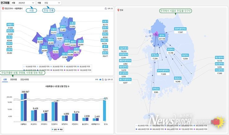 강옥현 서울시 디지털도시국장은 “서울로의 인구 유입은 규모보다 전입 목적과 이동 방식의 변화에 주목할 필요가 있다”며, “개인 단위 전입과 청년층 유입이 확대되는 추세에 맞춰, 인구이동 데이터를 기반으로 정책 분석과 도시 전략 수립의 정밀도를 높여 나가겠다”고 말했다.