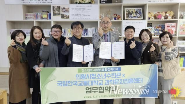 뉴스펀치 박상훈 기자 | 의왕시청소년재단 산하 의왕시청소년수련관 청소년방과후아카데미(문화공원로 33)가 1월 21일 국립한국교통대학교 과학문화진흥센터와‘의왕시 청소년의 과학문화 활성화와 지역사회 상생발전 기여를 위한 업무협약’을 체결했다.