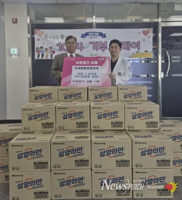 뉴스펀치 박상훈 기자 | 양주시 회천2동 연세원탑정형외과가 지난 21일 회천2동 행정복지센터에 라면 1,500개(약 120만 원 상당)를 기부했다.
