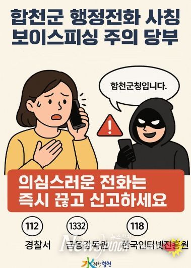 뉴스펀치 박세훈 기자 | 합천군은 최근 군청 행정전화번호를 도용해 공무원을 사칭하는 보이스피싱 사례가 발생함에 따라, 군민들에게 각별한 주의를 당부했다.
