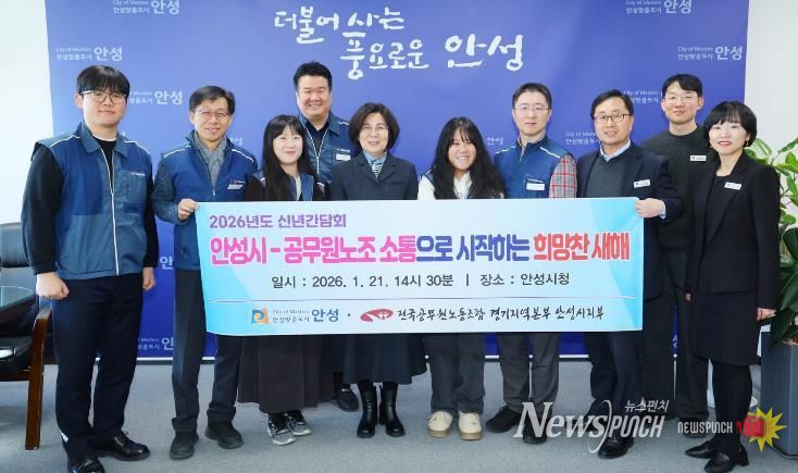 뉴스펀치 박상훈 기자 | 안성시와 전국공무원노동조합 경기지역본부 안성시지부는 지난 21일 신년을 맞아 노사 간 소통·협력을 강화하기 위한 노사간담회를 개최했다.