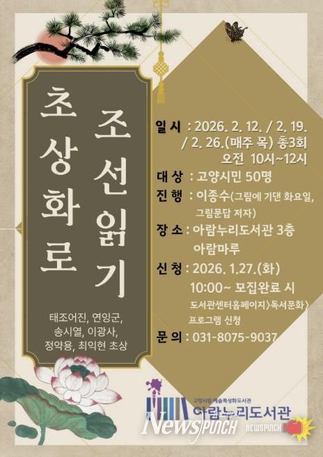 최경숙 일산동구도서관과장은 “초상화라는 시각적 매체를 통해 조선 인물과 시대를 흥미롭게 읽어볼 수 있는 뜻깊은 시간이 될 것”이라며 “역사와 미술을 함께 경험하고 싶은 시민들의 많은 참여를 바란다”라고 전했다.