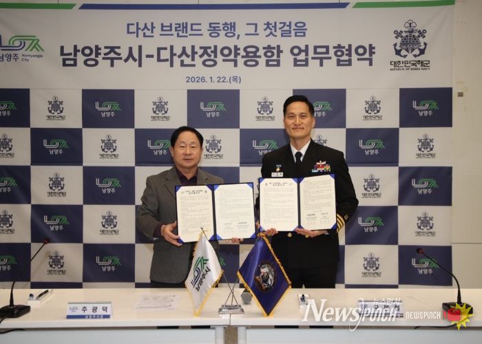 뉴스펀치 박상훈 기자 | 남양주시는 22일 해군 다산정약용함과 업무협약을 체결하고, 다산정약용 정신을 기반으로 브랜드 가치 확산과 문화·안보 분야 협력에 나섰다.