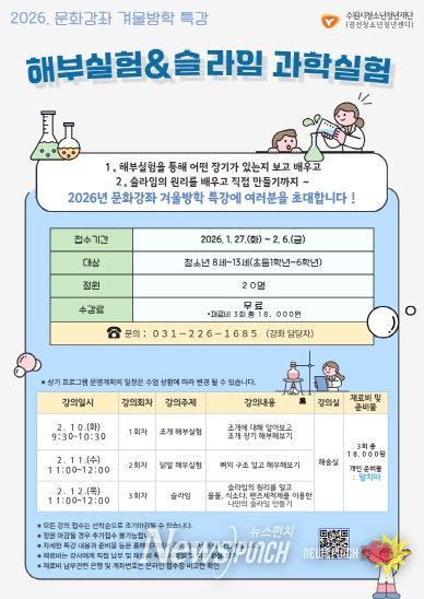 이번 청소년 겨울방학특강은 초등학생 눈높이에 맞춘 실험·탐구 중심 수업으로 구성되어, 어렵게 느껴질 수 있는 과학 개념을 쉽고 재미있게 이해할 수 있도록 돕는다.