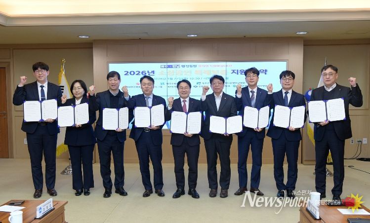 광주광역시는 22일 시청 비즈니스룸에서 광주신용보증재단, 광주은행, 하나은행, KB국민은행, NH농협은행, 신한은행, 카카오뱅크, 우리은행 등 8개 금융기관과 ‘2026년 소상공인 특례보증 지원 협약’을 체결했다.
