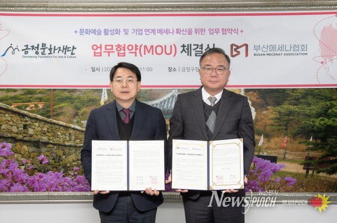 뉴스펀치 김윤걸 기자 | 금정문화재단(이사장 윤일현)은 지난 21일 금정구청에서 (사)부산메세나협회(회장 백정호)와 지역 문화예술 활성화 및 메세나 사업 확산을 위한 업무협약(MOU)을 체결했다고 밝혔다.