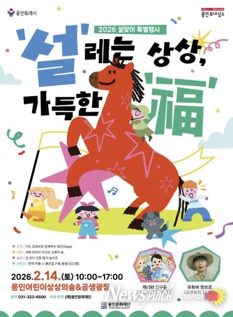뉴스펀치 박상훈 기자 | 용인문화재단은 2026년 설 명절을 맞아 2월 14일, 용인어린이상상의숲과 용인문화도시플랫폼 공생광장 일원에서 설맞이 특별행사 〈‘설’레는 상상, 가득한 ‘福’〉을 개최한다.