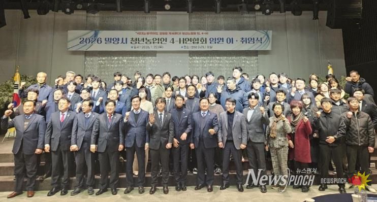 뉴스펀치 박세훈 기자 | 경남 밀양시는 지난 22일 호텔 아리나에서 ‘2026 밀양시 청년농업인 4-H연합회 임원 이·취임식’을 가졌다.