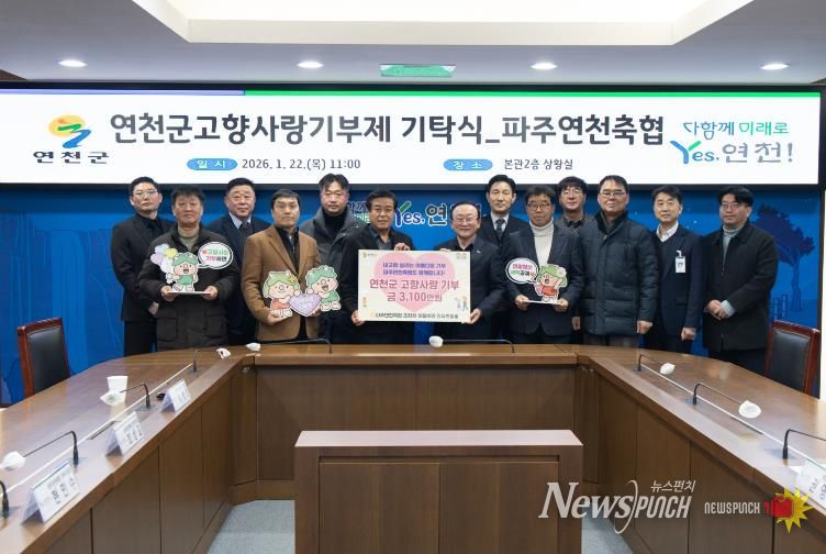 뉴스펀치 박상훈 기자 | 파주연천축협 임직원들이 뜻을 모아 지난해 연천군에 고향사랑기부금 총 3,100만 원을 기부했다.