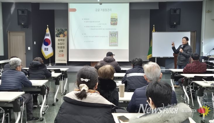 뉴스펀치 조평훈 기자 | 대구광역시농업기술센터는 지난 1월 20일 대구 지역 감귤 재배농가 24명을 대상으로 고품질 감귤 생산을 위한 ‘겨울철 감귤 재배 관리 교육 및 전정 기술 교육’을 실시했다.